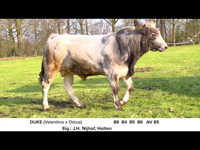 Duke is een stier met een hele brede en zeer mooie lang gerekte binnen bil.