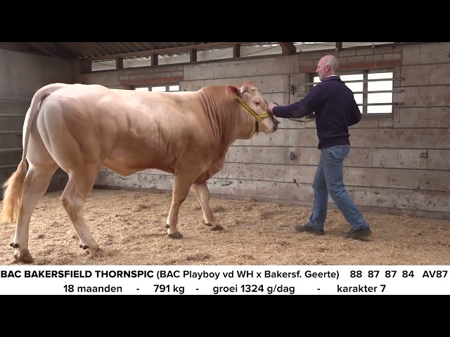 BAC Bakersfield Thornspic is een zeer goed ontwikkelde stier met veel lengte en rasuitstraling. De kop heeft veel expressie. Het bekken is zeer lang met een goede ligging. De stier heeft kwaliteit in de bespiering. Het beenwerk wordt goed gebruikt.